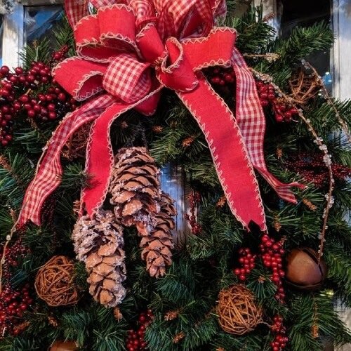 We make fresh, custom wreaths of all sizes, and offer a variety of combinations of ribbons, bows and other decorations, to give your home or business an elegantly festive look this Christmas!